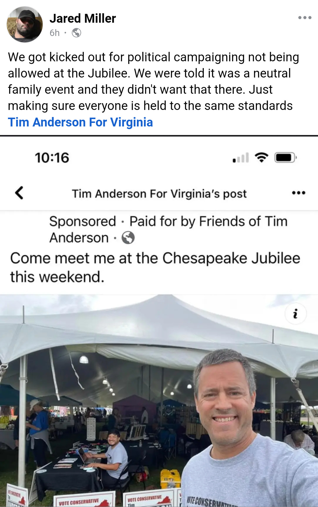 Former Chesapeake school board candidate arrested for assaulting law enforcement on January 6. Jared Miller was charged felonies for his role. Earlier this year Miller appeared alongside former Delegate Tim Anderson while Anderson was campaigning for State Senate. Miller and Anderson shared a common theme of opposing LGBTQ books in public schools.