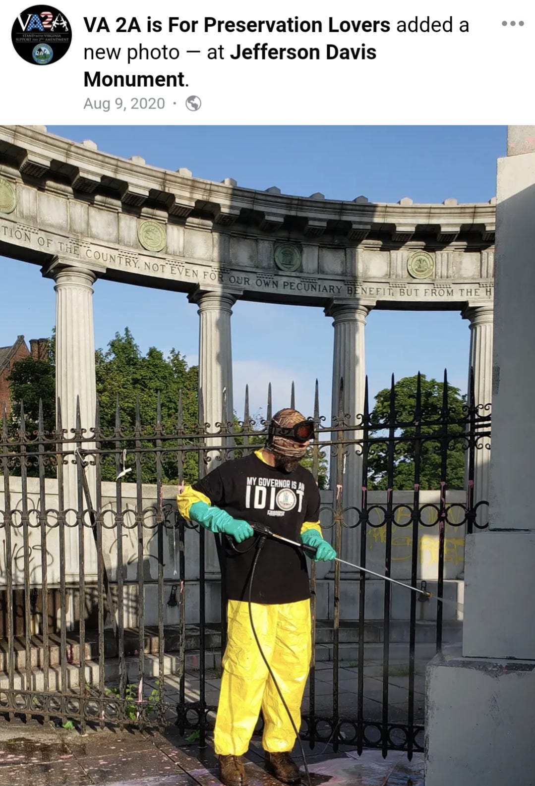 Confederate Statue Graffiti Remover Leaves House After Power Washer Leaks Gas. Bobby Eberth of VA 2A is for Preservation Lovers was a reoccurring fixture on Monument Ave during protests in the summer of 2020. Eberth would come armed with a power washer and remove graffiti from Confederate Statues. However, last weekend had the Chesterfield Fire Department arrive due to a power washer leaking gas into the vents of the Eberth residence. Eberth is currently the President of Virginians for Children First.