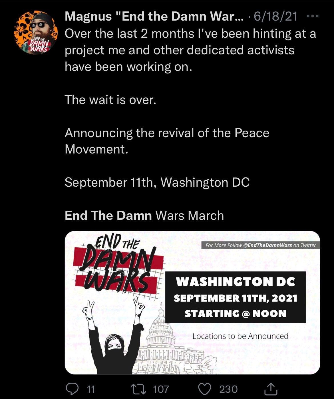 Magnus would be part of organizing anti-war protests in Washington DC that brought out nearly dozens of people.