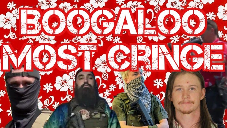 Is it safe to say that Boogaloo Boys have ended their ventures into the real world? I certainly can't rule out that this movement will keep coming back in some other form but to me it feels like the name Boogaloo won't be making a comeback. If anyone is reading this and identifies as a Boogaloo… it’s never too late to quit the movement. Here are the most cringe to ever claim label. I have left out murders like Steve Carrillo as this list focuses on cringe instead. If this is your first-time hearing about Boogaloo Boys, I recommend The Boogaloo Movement is Not What You Think by Robert Evans.